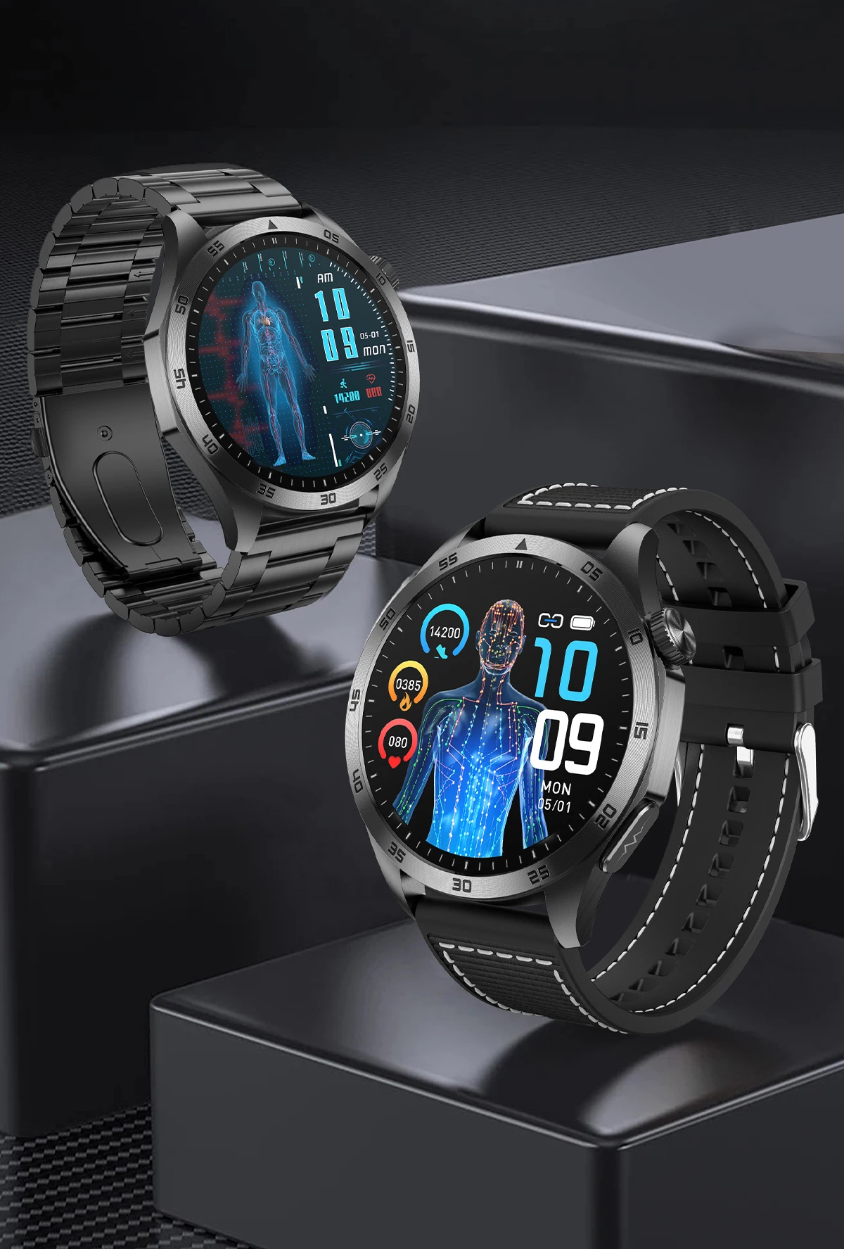 The ET485 Laser Health Smartwatch combines next-generation ECG+PPG technology with laser-assisted health tracking, offering accurate readings for blood pressure, heart rate, blood oxygen, uric acid, and lipids. Designed for both men and women, this professional-grade watch provides AI health diagnosis, body composition analysis, and five-organ management to help you stay ahead of your health.