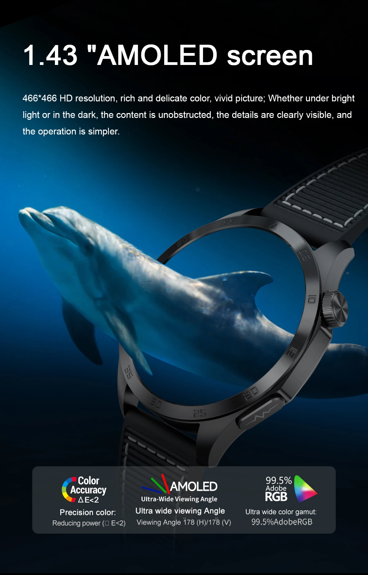 ✅ 1.43” AMOLED HD Display – 466×466 ultra-clear sapphire glass screen