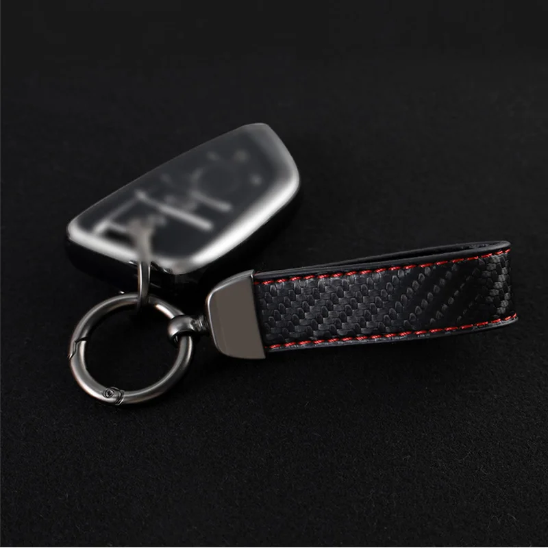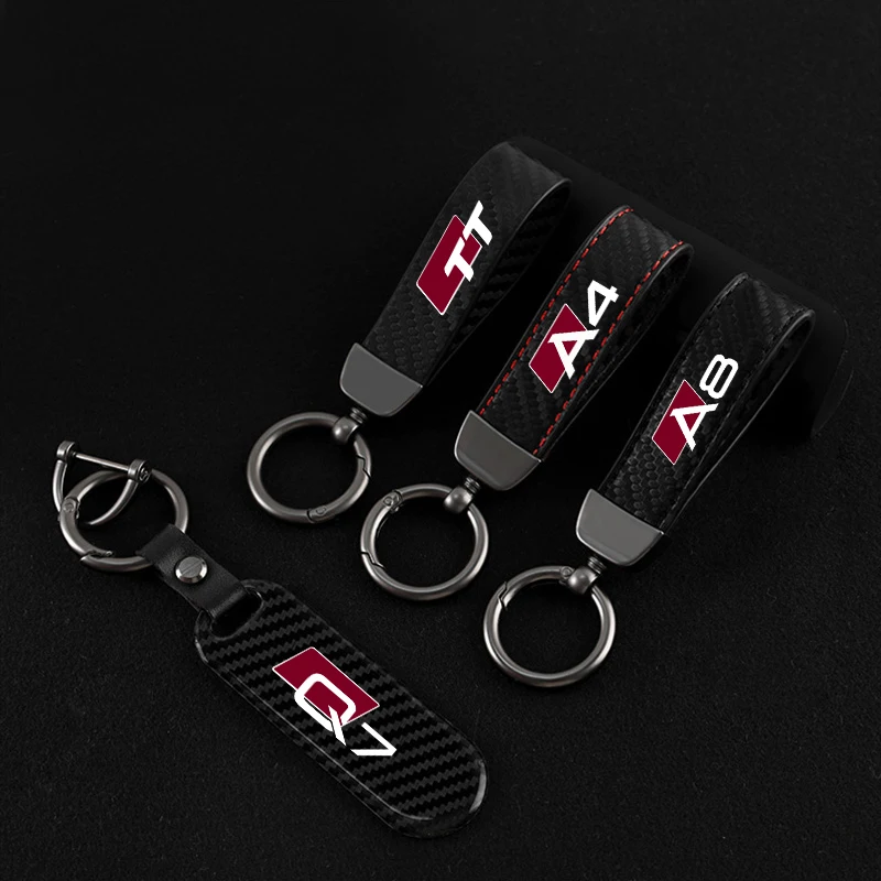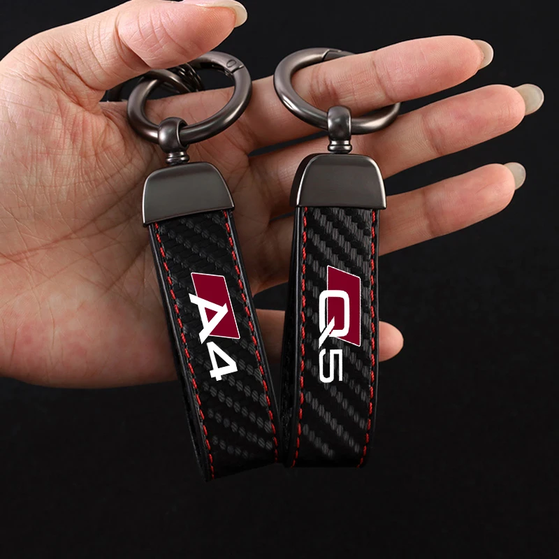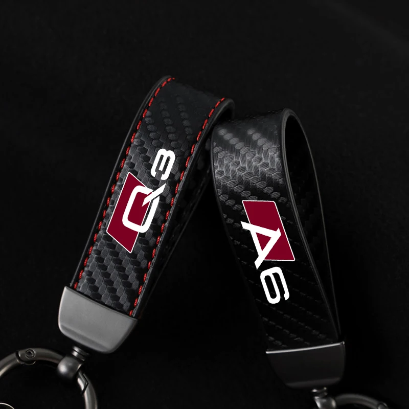 Luxury Carbon Fiber Leather Keychain for Audi A3 A4 A6 Q5 Q7 Q8