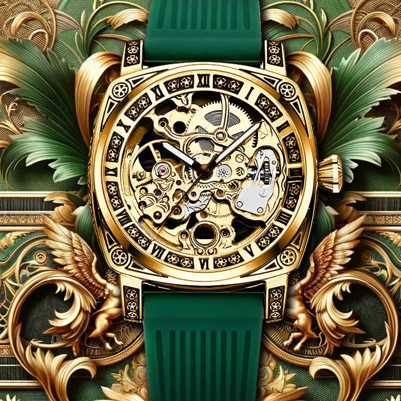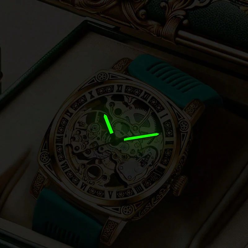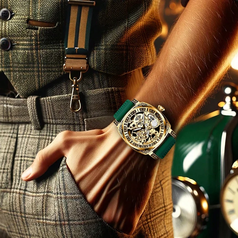 The hollow (skeleton-style) dial reveals the inner mechanics, creating a bold and fashionable retro look that stands out in both business and casual settings.