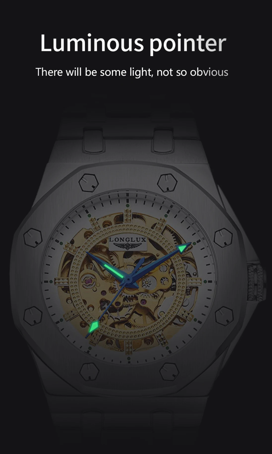 Luminous Hands – Read the time clearly even in low-light conditions.