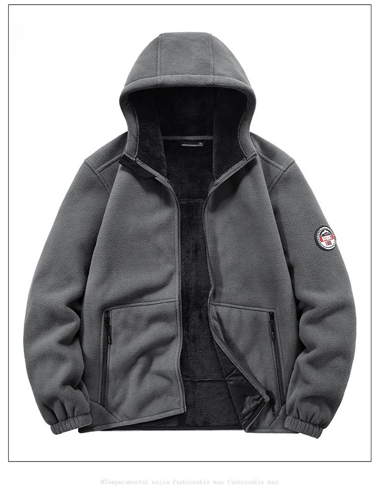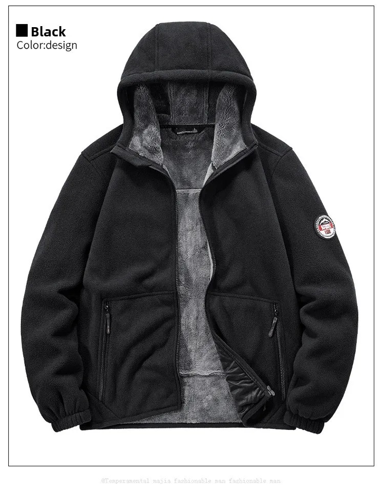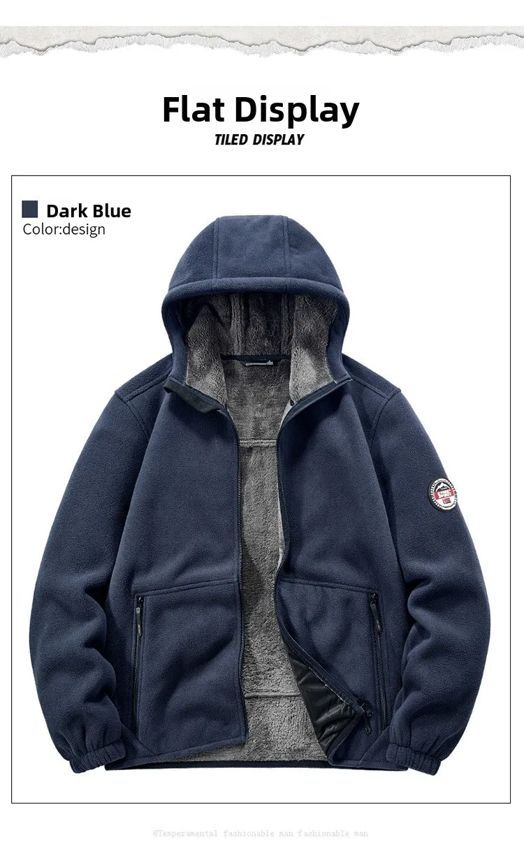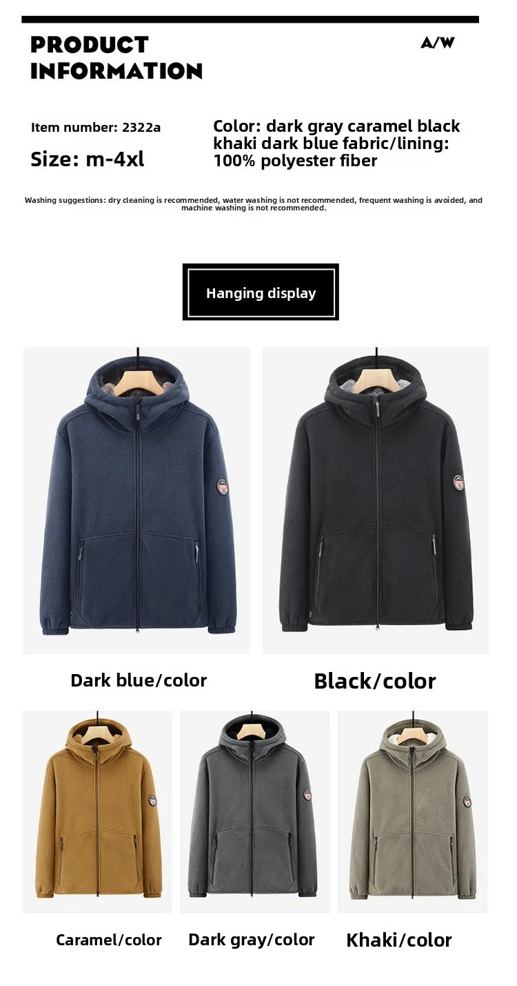 Men’s Thickened Fleece Hooded Jacket – Autumn & Winter Essential